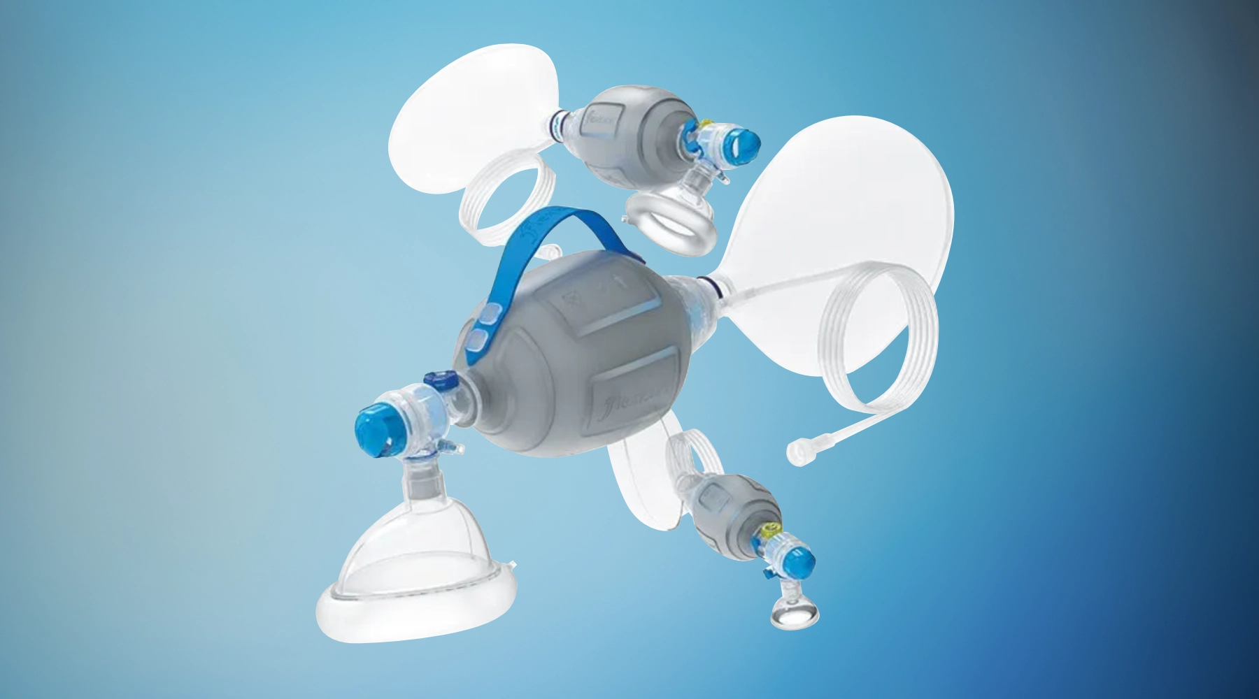 Reanimadores manuales de un solo uso y ergonómicos con niveles altos de suministro de oxígeno y componentes premontados en envases fáciles de abrir.